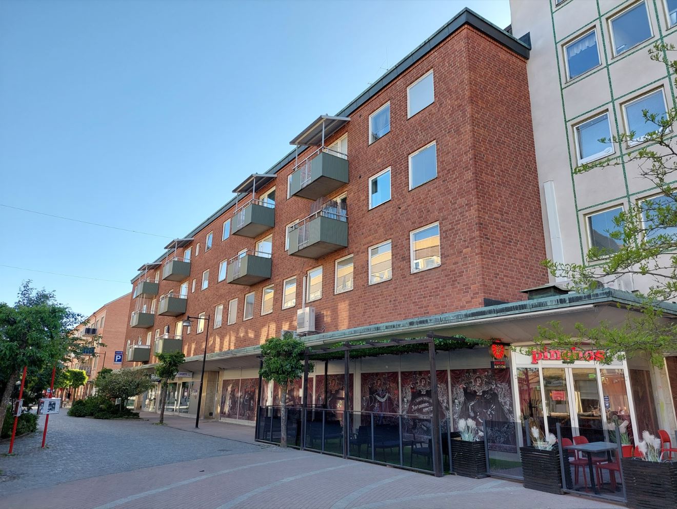 Mysig 2:a med balkong över Hantverkaregatan.